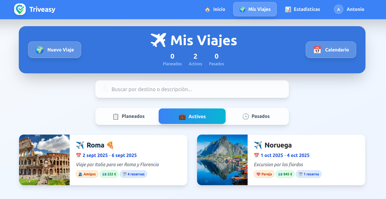 Triveasy te ayuda a centralizar todas tus reservas de vuelos, hoteles y actividades en un solo lugar. Recibe recordatorios inteligentes y comparte tu itinerario en segundos. Haz que viajar sea realmente easy.